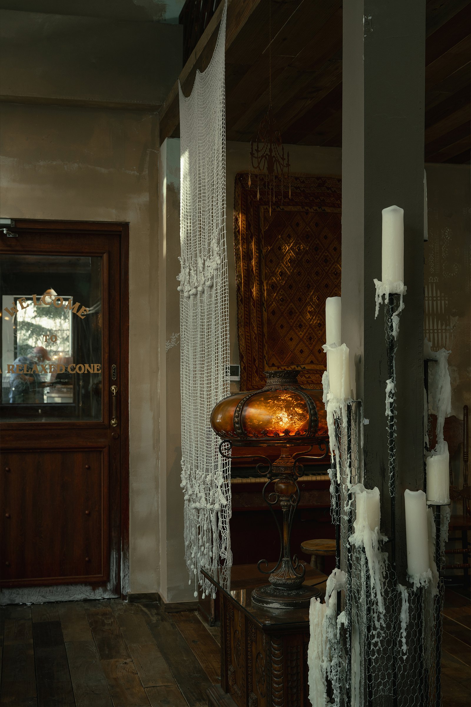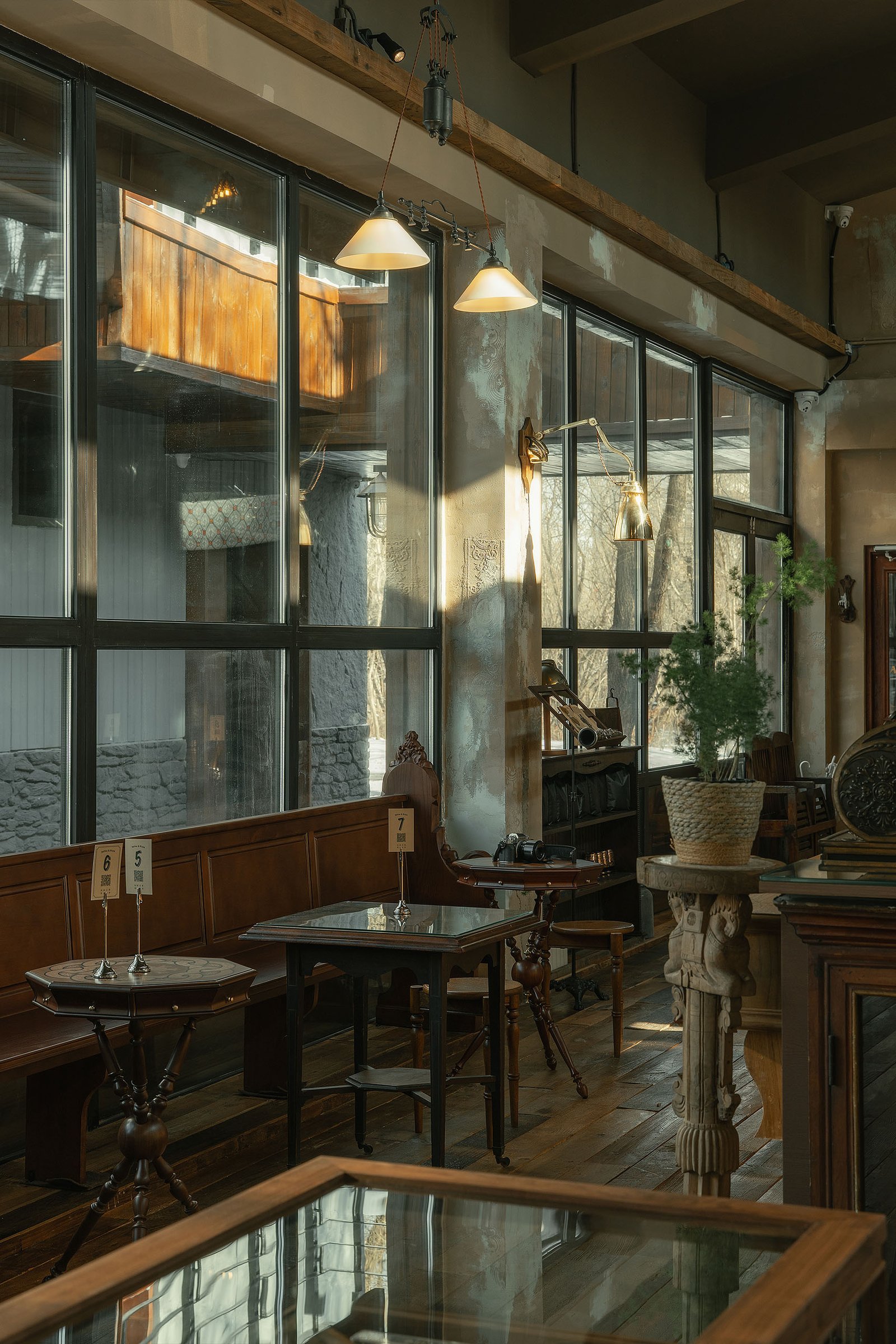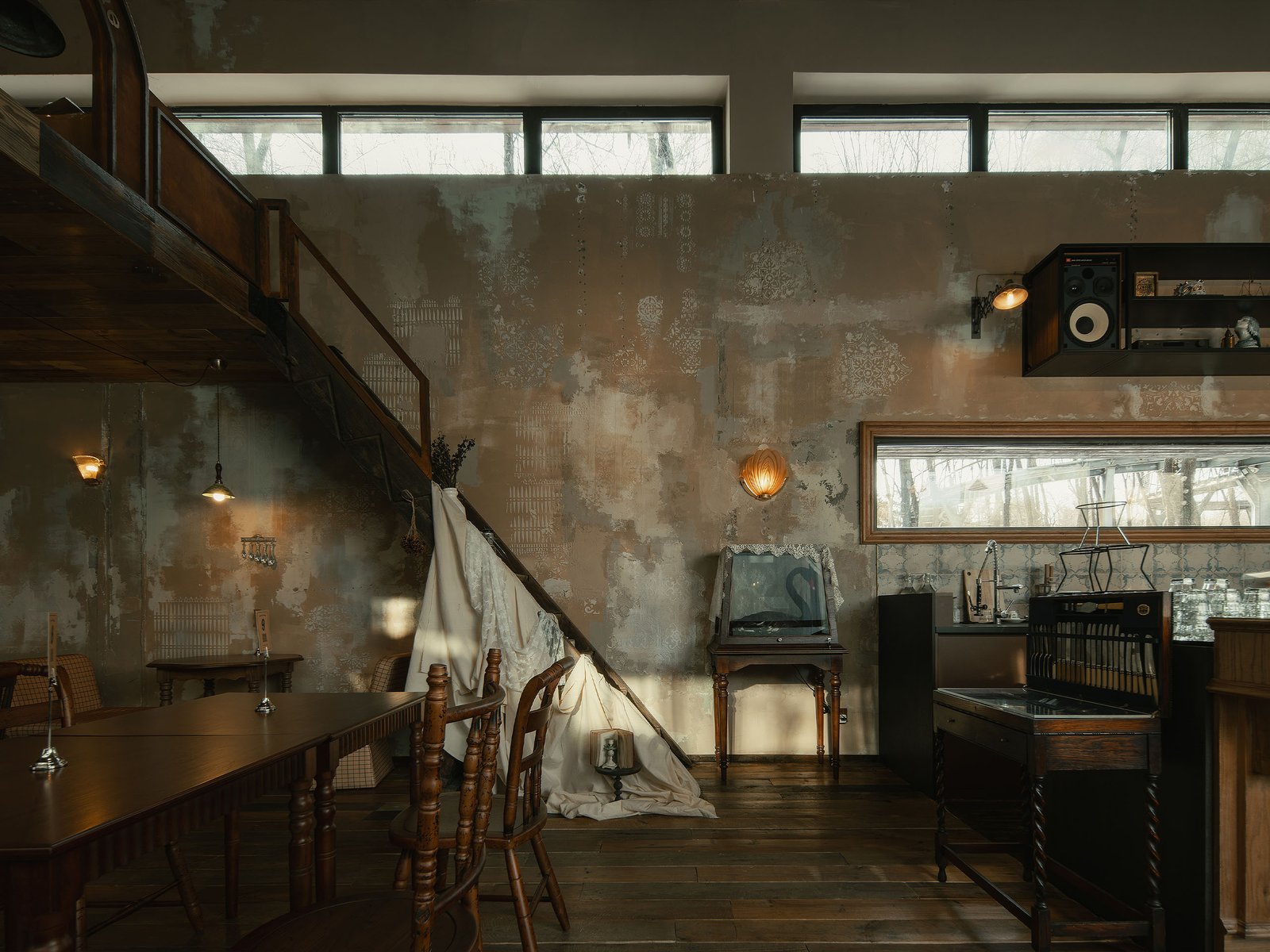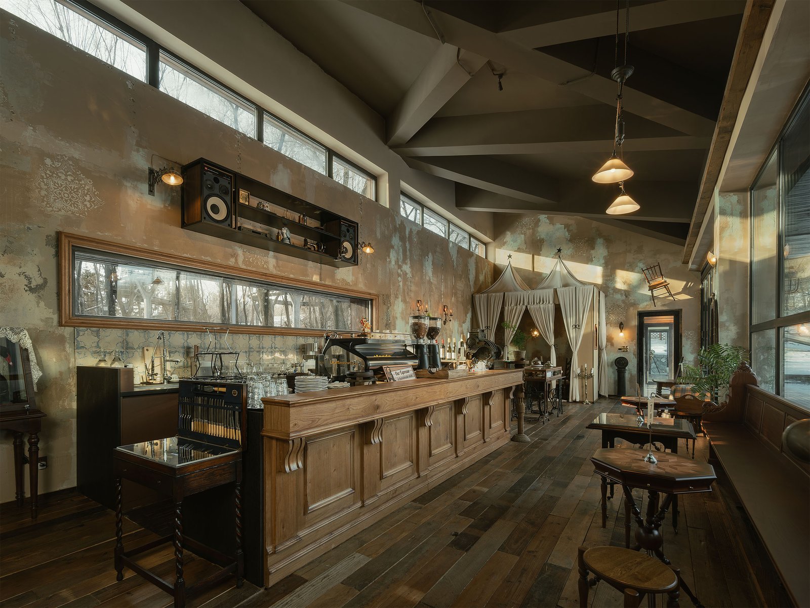 Le design de cet café se distingue par une approche artistique et sensible, où l’architecture intérieure met en valeur la matière, la lumière et le temps. Les volumes généreux, les structures apparentes et les textures volontairement patinées composent un décor authentique et immersif, renforcé par un dialogue subtil entre lumière naturelle et éclairage tamisé. Le bois, omniprésent, apporte chaleur et profondeur, tandis que le mobilier et les éléments décoratifs, soigneusement sélectionnés, créent une atmosphère propice à la contemplation et à la détente. L’ensemble forme un lieu singulier, à l’esthétique maîtrisée, où le design accompagne l’expérience du visiteur avec douceur et caractère.