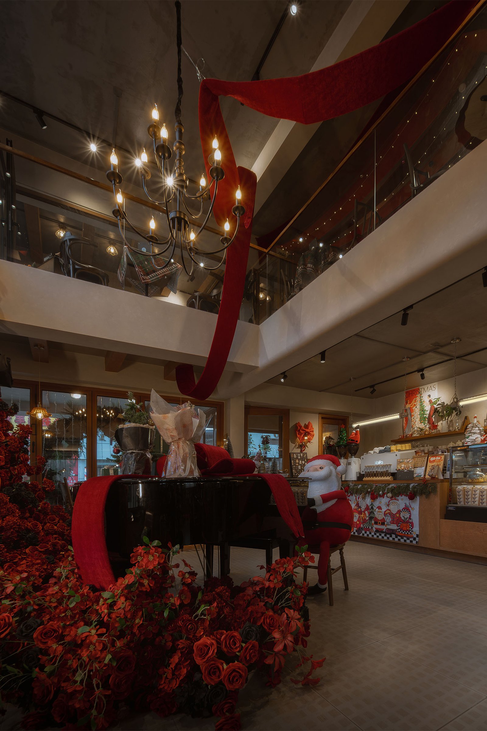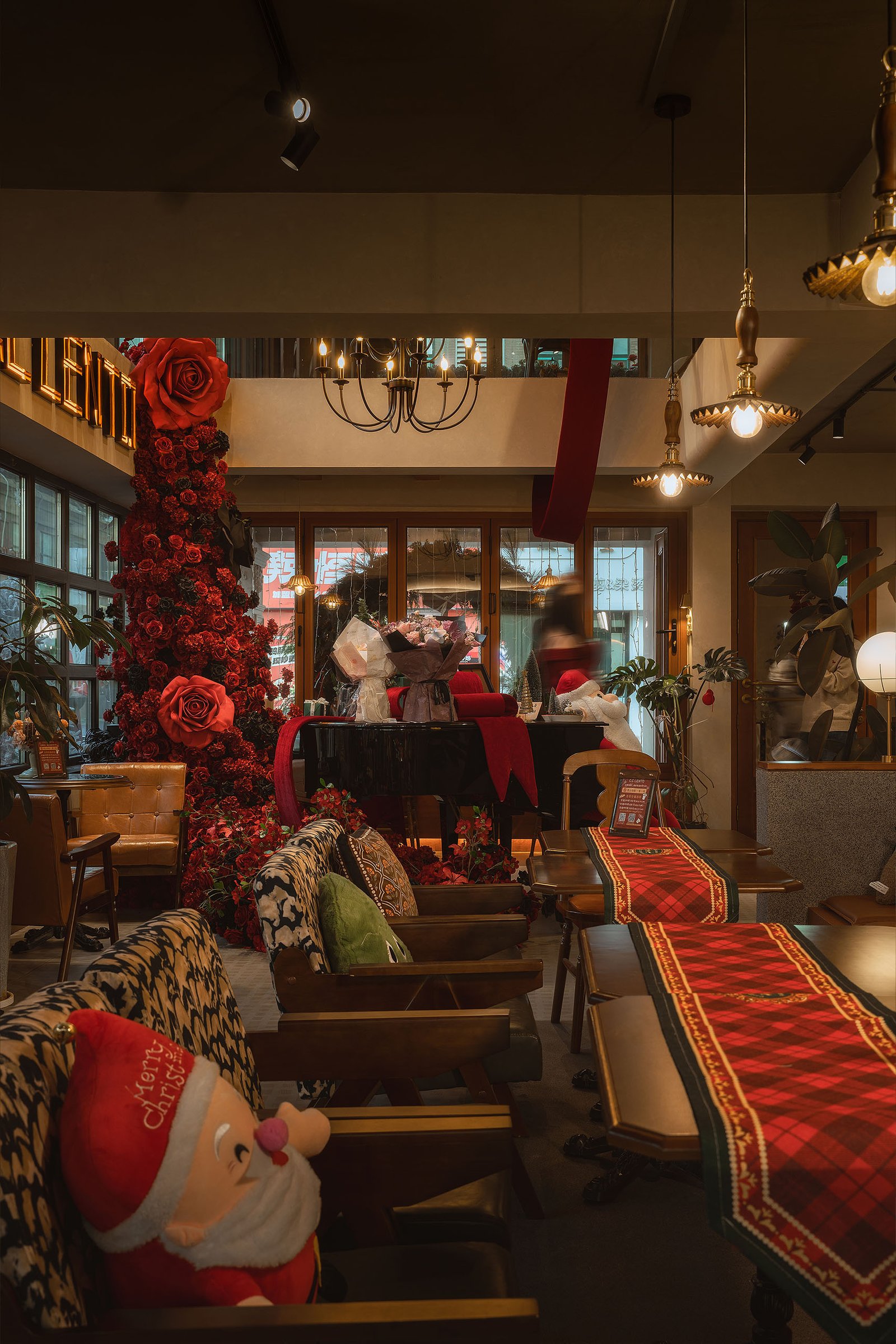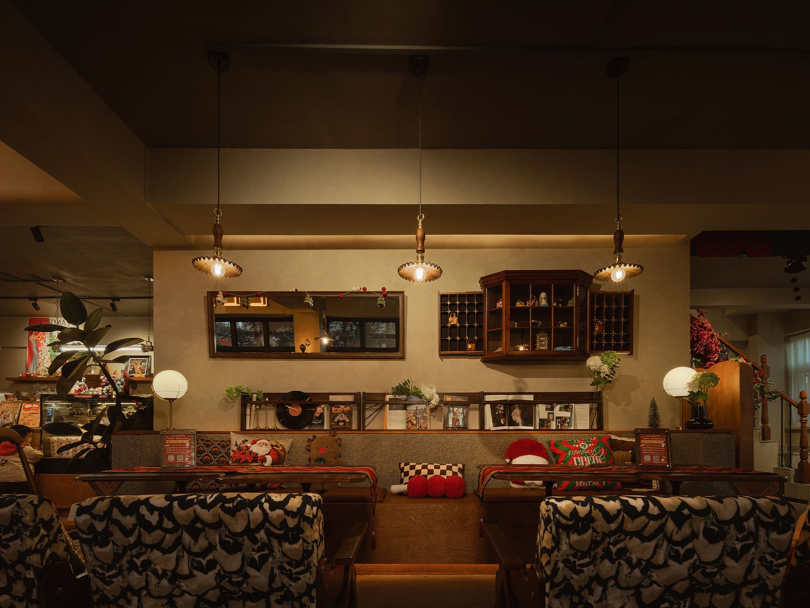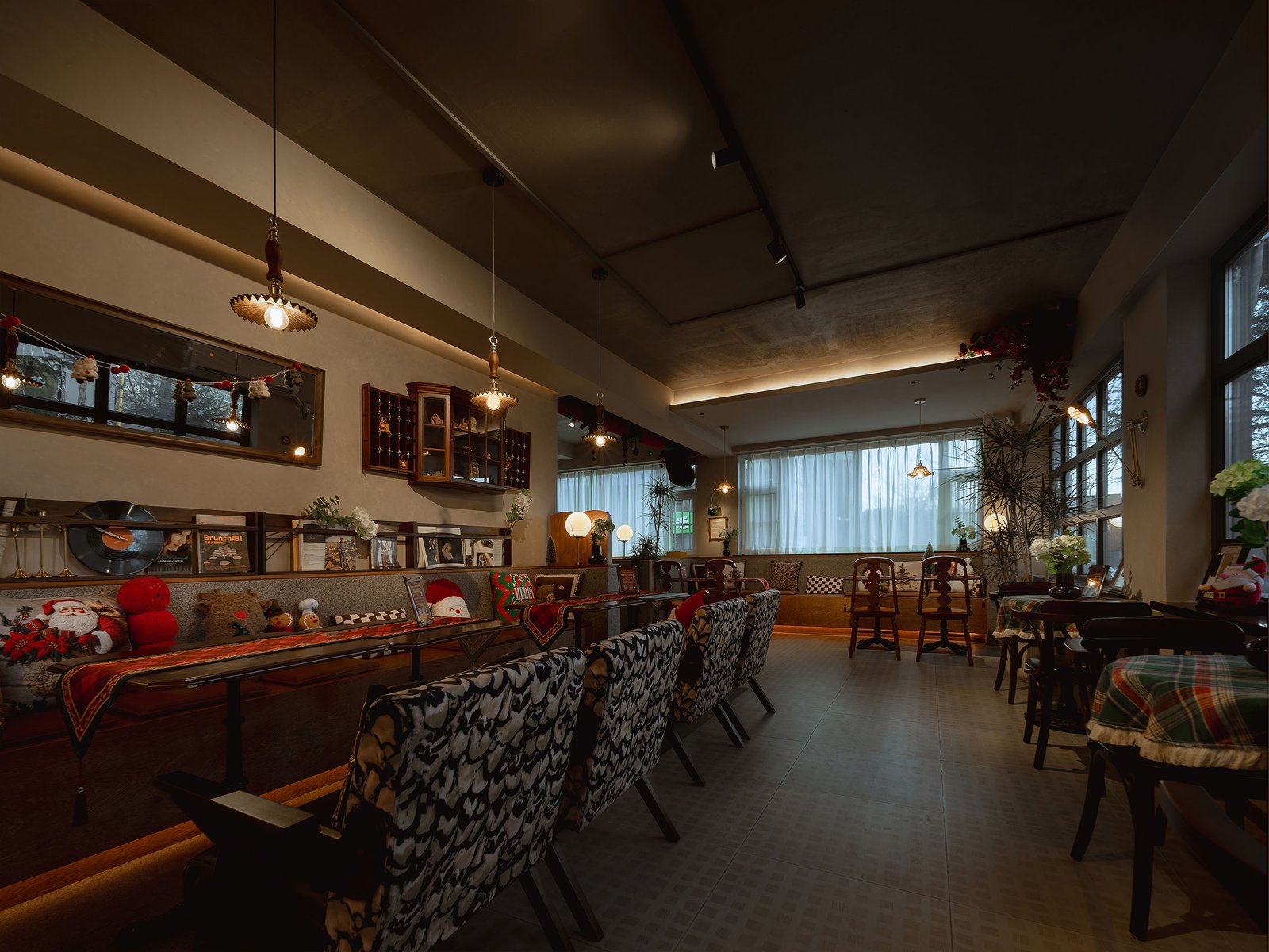 L’agencement intérieur favorise à la fois la convivialité et la contemplation. Les banquettes, fauteuils et petites tables sont disposés pour offrir différentes expériences : moments de partage, pauses calmes ou instants plus intimistes. La présence d’objets emblématiques, comme le piano, les étagères décoratives ou les installations suspendues, confère au café une identité forte et mémorable. L’ensemble forme un décor harmonieux, où le design ne se contente pas d’être esthétique mais accompagne pleinement l’expérience du visiteur, faisant de ce café un lieu à la fois chaleureux, singulier et inspirant.
