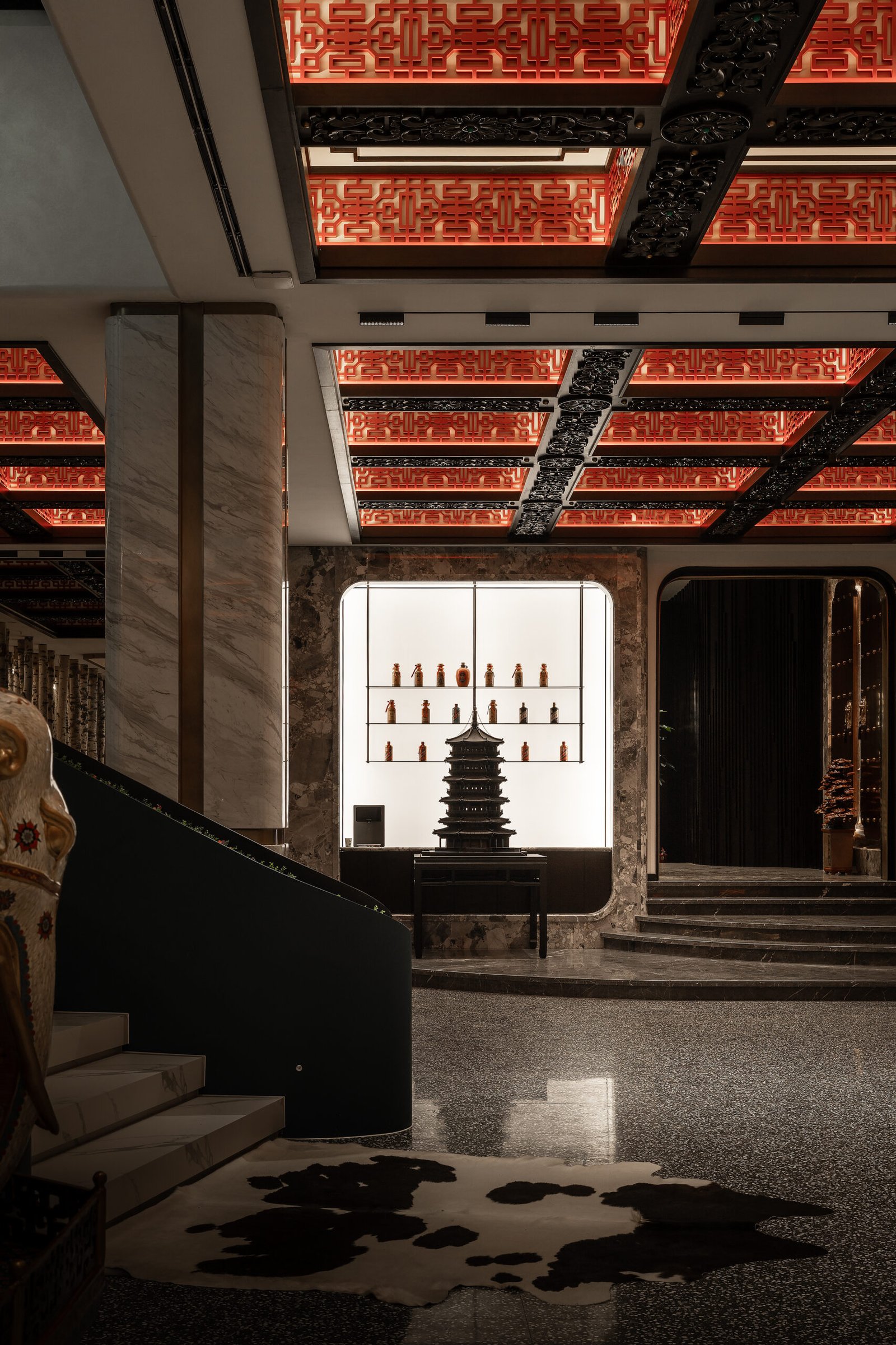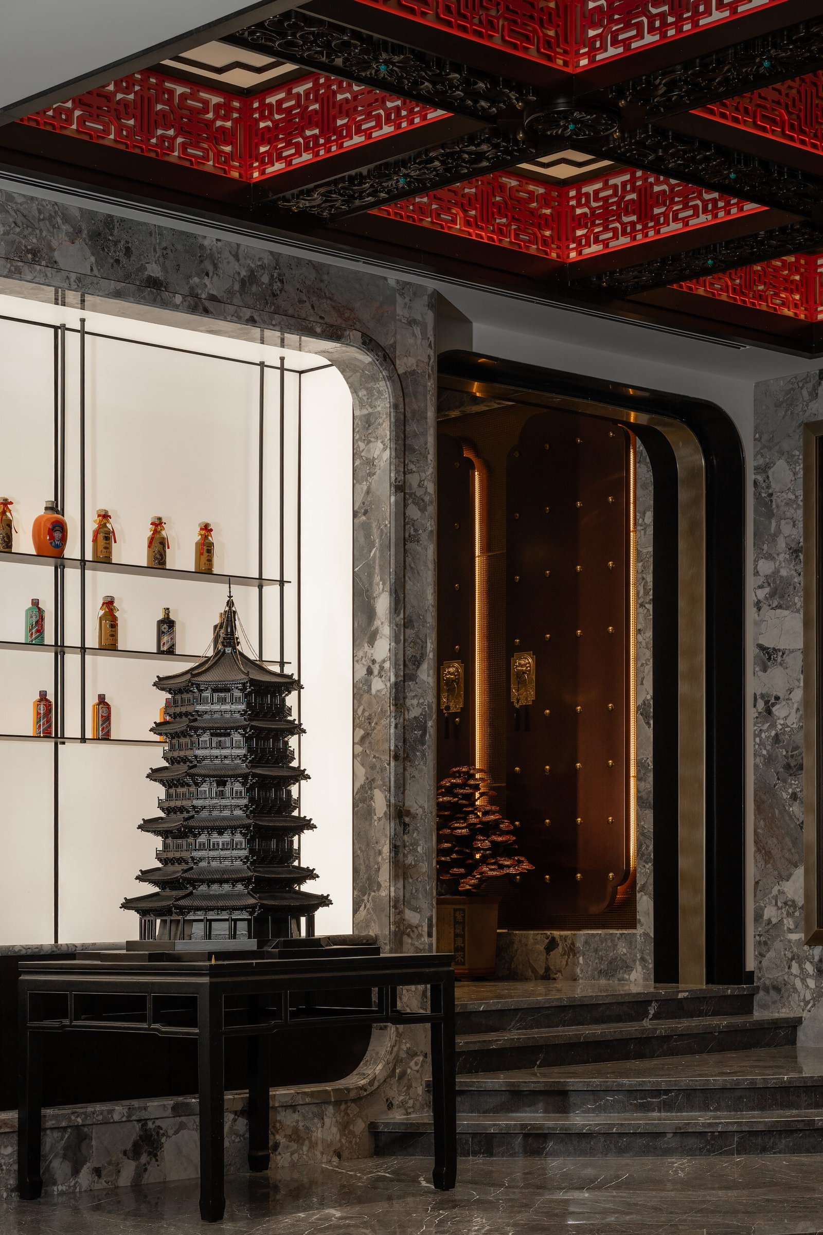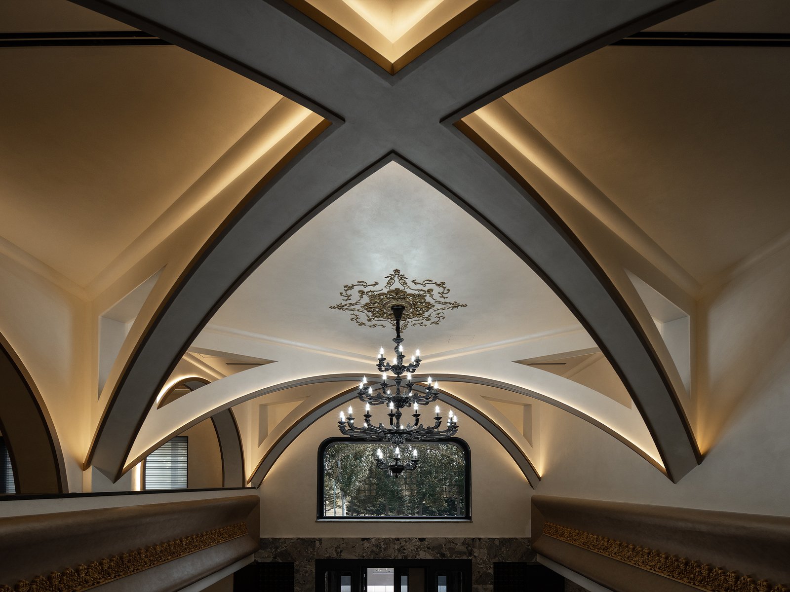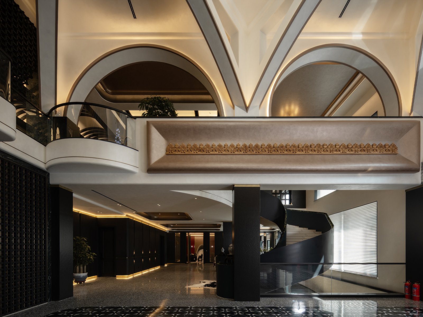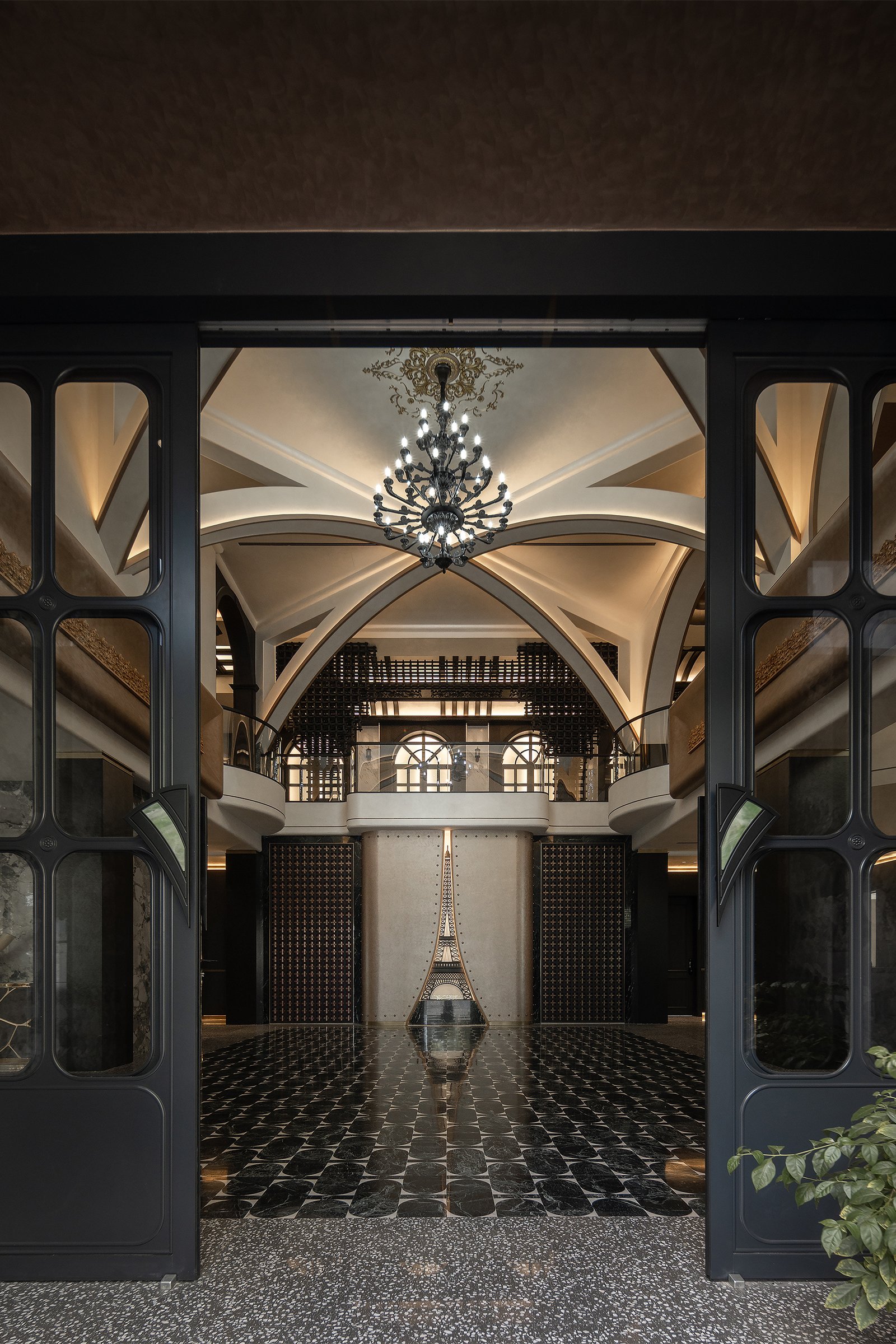 Le design de cet hôtel se distingue par sa capacité à fusionner l’opulence classique avec une modernité subtile et parfaitement maîtrisée. Les voûtes architecturales spectaculaires, les jeux de symétrie et les détails dorés évoquent l’élégance d’un palais, tandis que les matériaux contemporains tels que le marbre nervuré, le métal noir mat et les éclairages indirects apportent une lecture actuelle et raffinée des espaces. Chaque élément, du mobilier aux décors muraux, est pensé comme une pièce sculpturale, créant une atmosphère à la fois théâtrale et harmonieuse. Cet équilibre entre tradition et innovation confère au lieu une identité forte, empreinte de noblesse et de modernité.